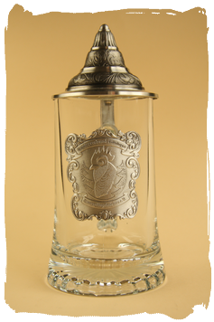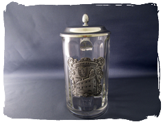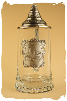 Glasseidel mit Zinnapplikationen sind Präsente - individuell nach Ihren Wünschen entworfen und meisterlich graviert.